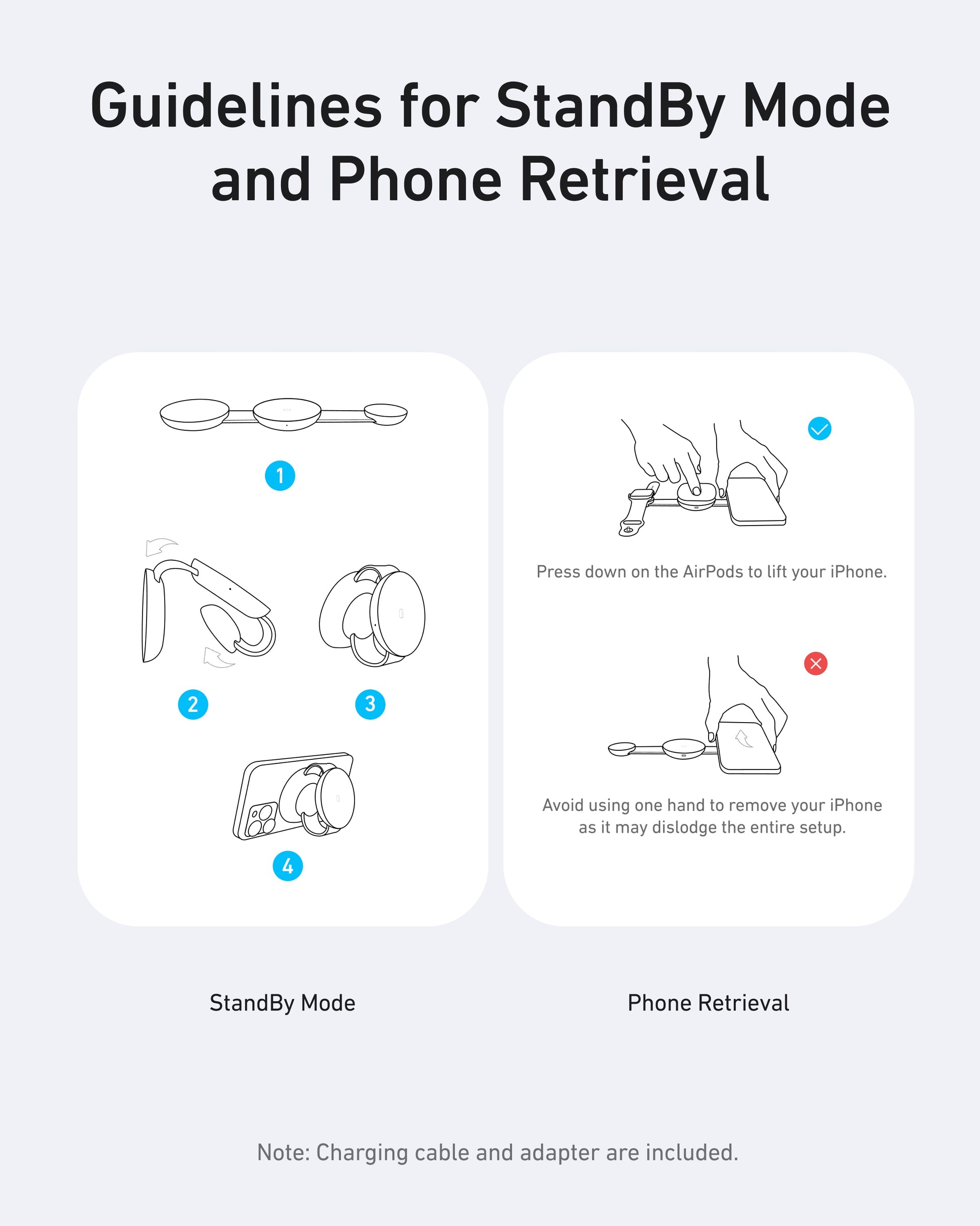 - StandBy Mode for Optimal Viewing: Improve your iPhone's usability with a charger that offers landscape viewing and supports StandBy mode when folded.