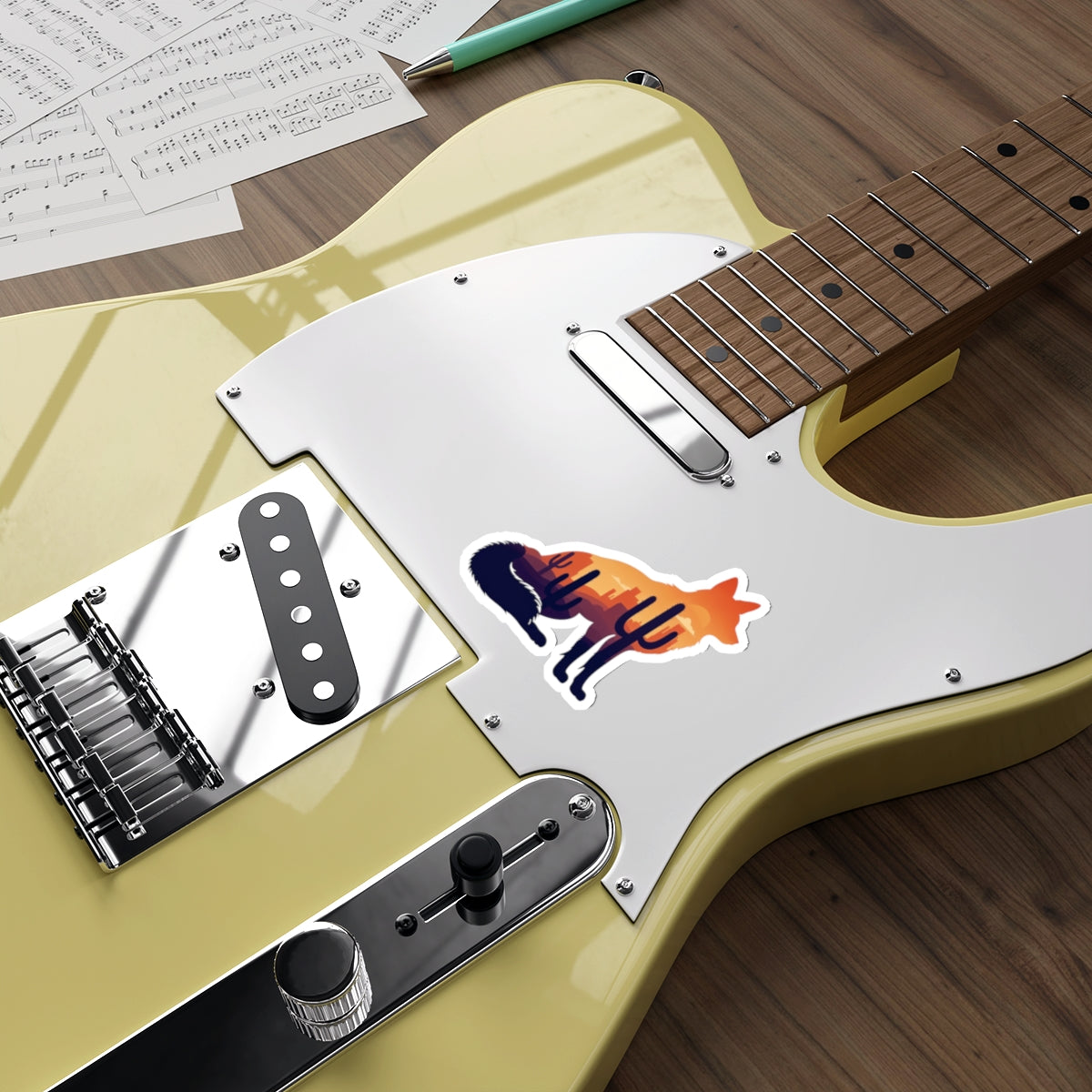 Coyote Silhouette Sticker with Desert Sunset & Cactus Landscape – Southwestern Wildlife Vinyl Die-Cut Sticker