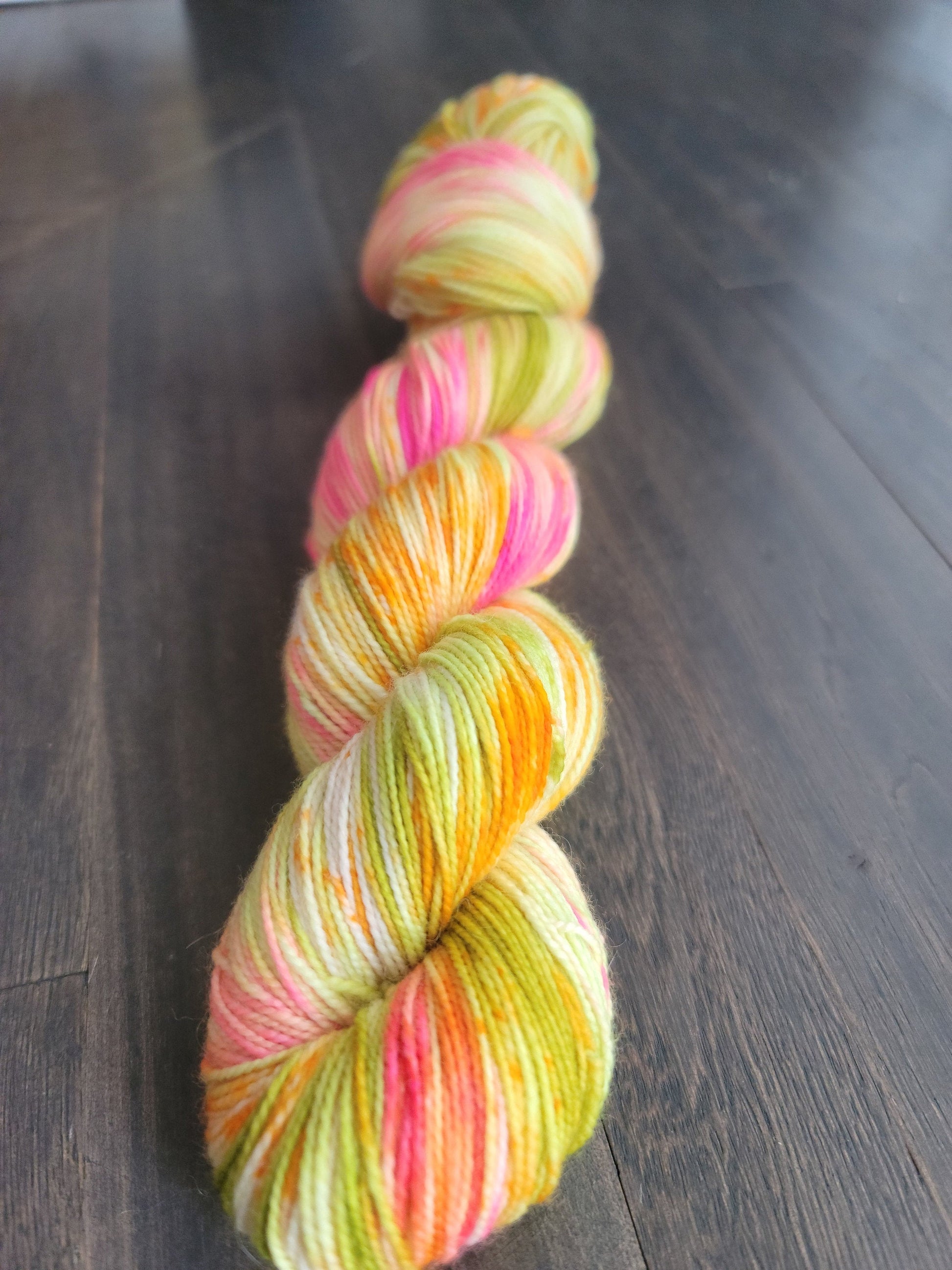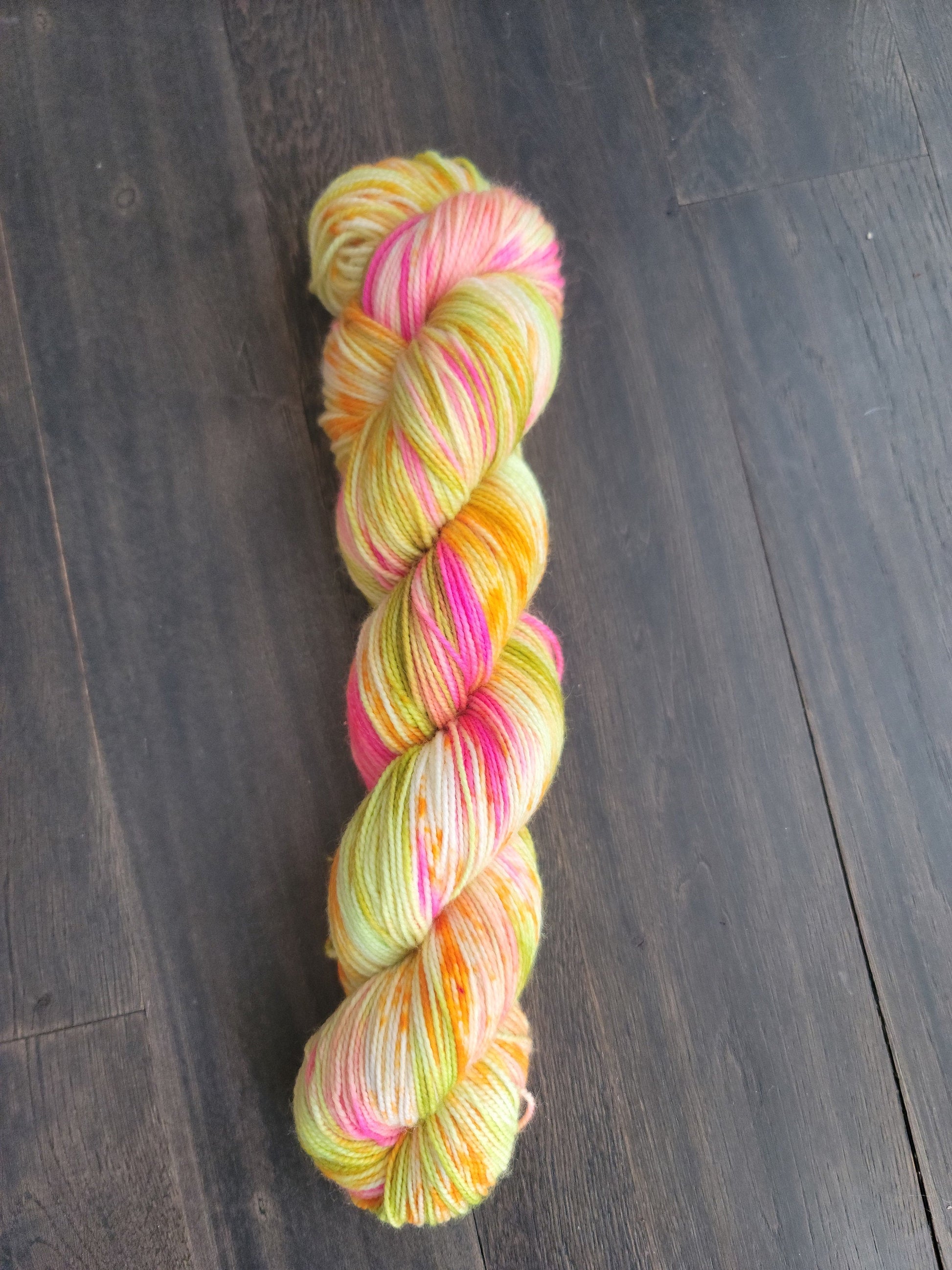 This hand dyed fiber is perfect for sock knitting but also great for shawls and other projects!