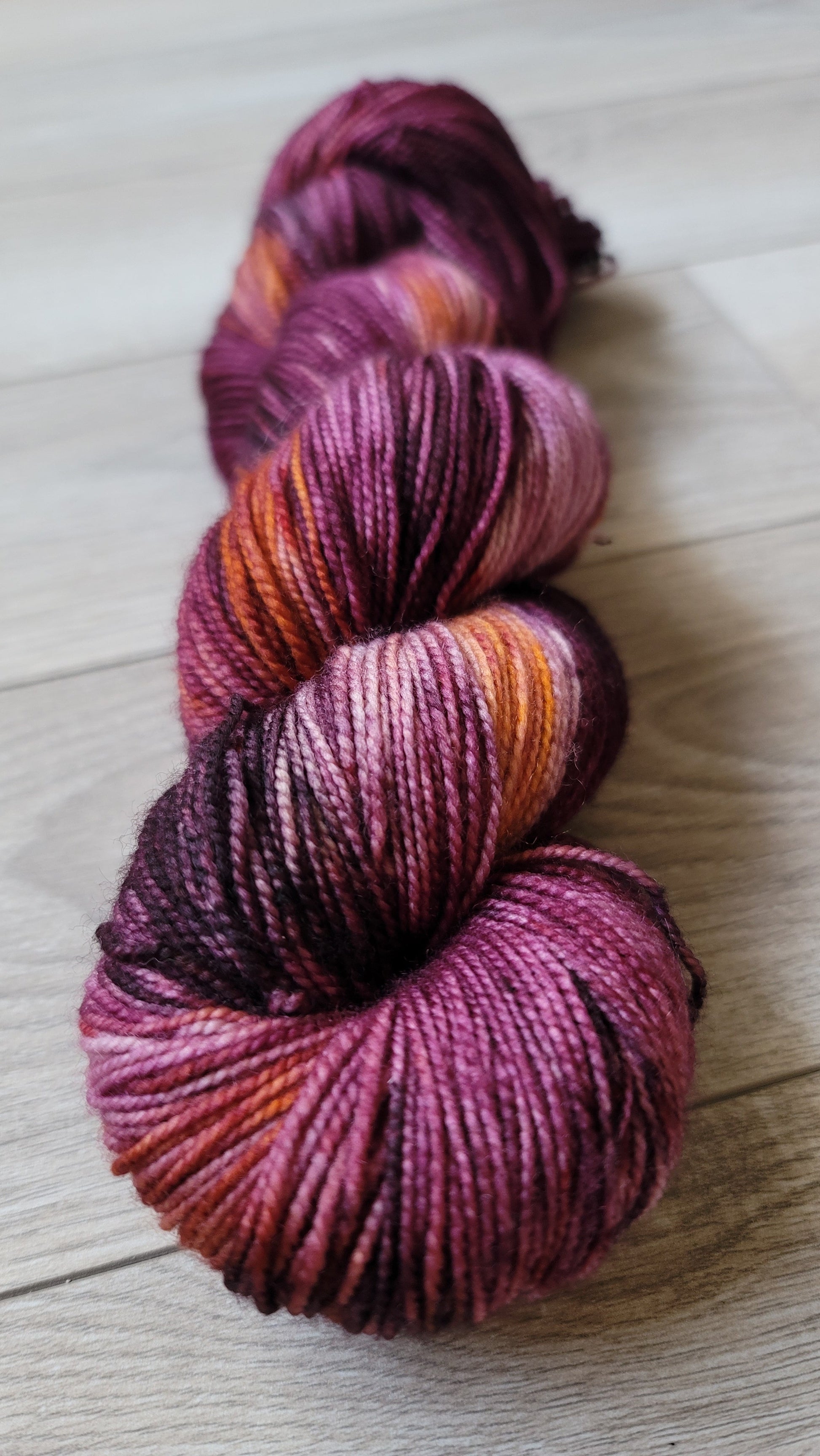 Skeins are dyed to order. There may be slight differences from skein to skein. If you are knitting with more than 1 skein, it is suggested to alternate between skeins to prevent any color pooling. Colors depicted in the pictures are as best represented as possible, however colors can vary slightly from monitor to monitor.