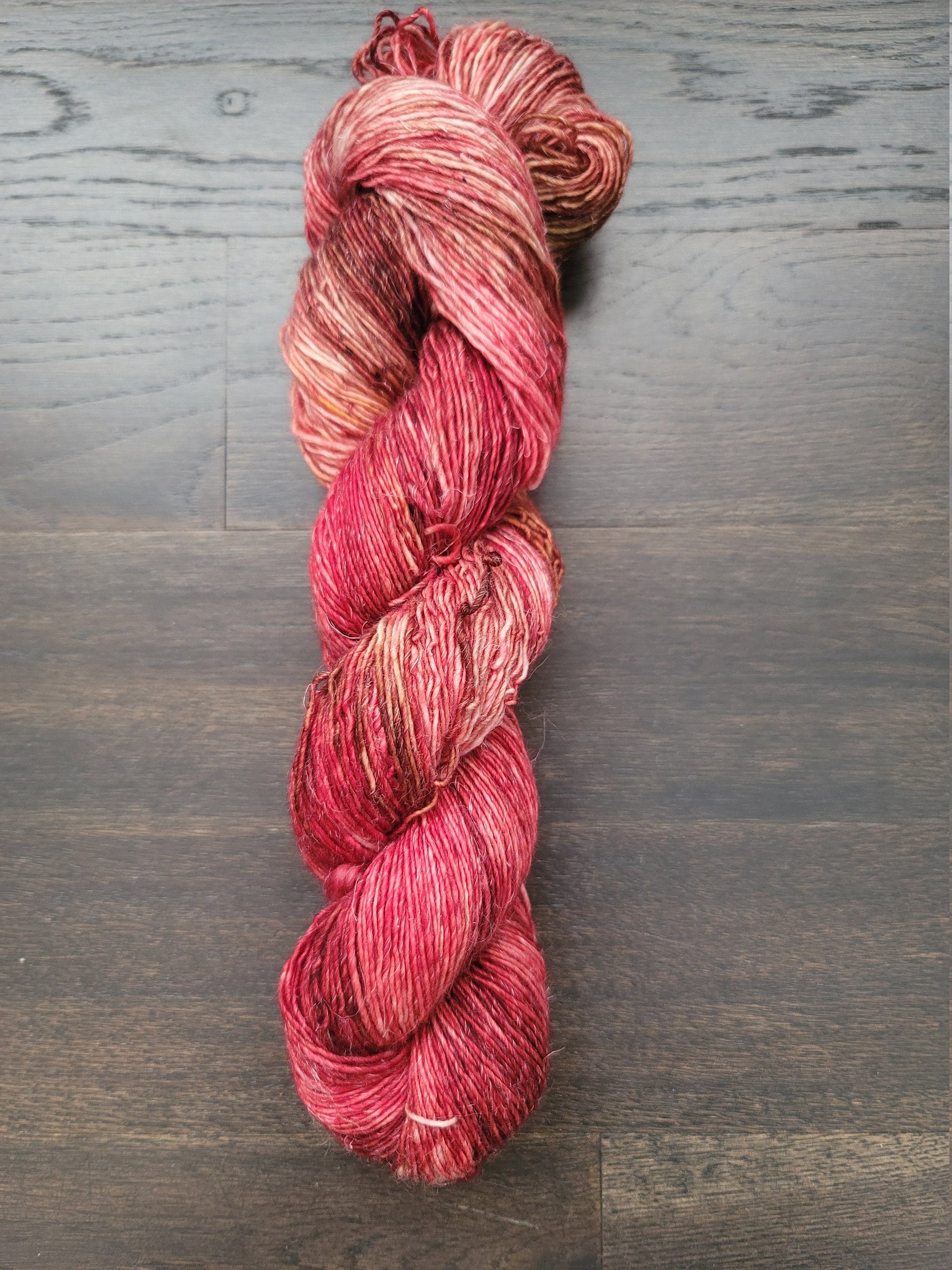Skeins are dyed to order. There may be slight differences from skein to skein. If you are knitting with more than 1 skein, it is suggested to alternate between skeins to prevent any color pooling. Colors depicted in the pictures are as best represented as possible, however colors can vary slightly from monitor to monitor.