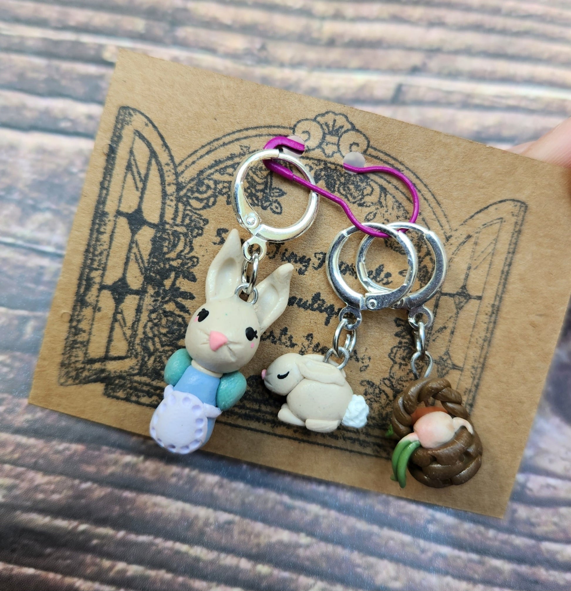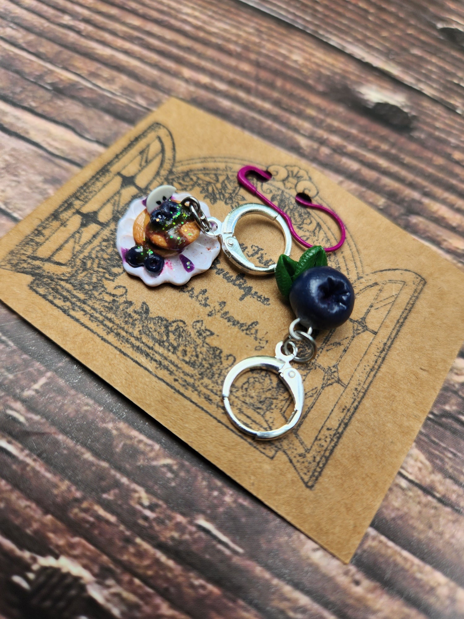 Each trinket is handcrafted using a variety of techniques with needle tools to sculpt these miniatures! Techniques like handpainting, resin art and free hand sculpting. Your trinkets are always made special for you! Lever back hardware allows crochet or knitted use and can be slipped or hooked. Your trinkets should be stored in a hard case or safe space when not in use. Polymer clay is very lightweight and does not pull on your WIP! Decorate your WIPs and enjoy your fiber arts jewelry!
