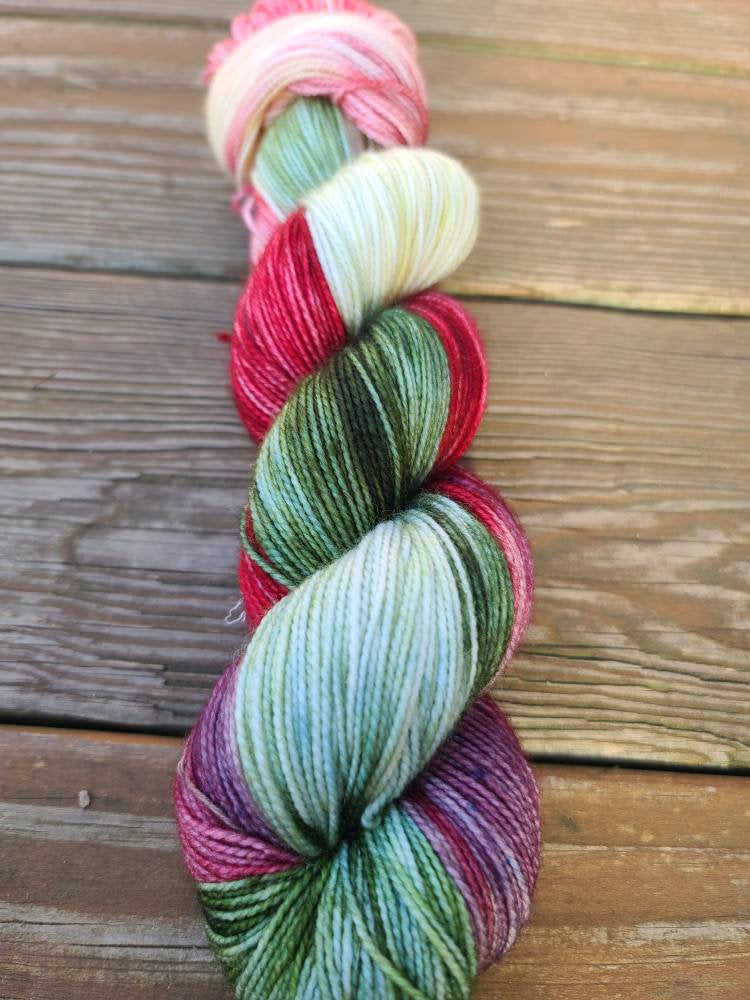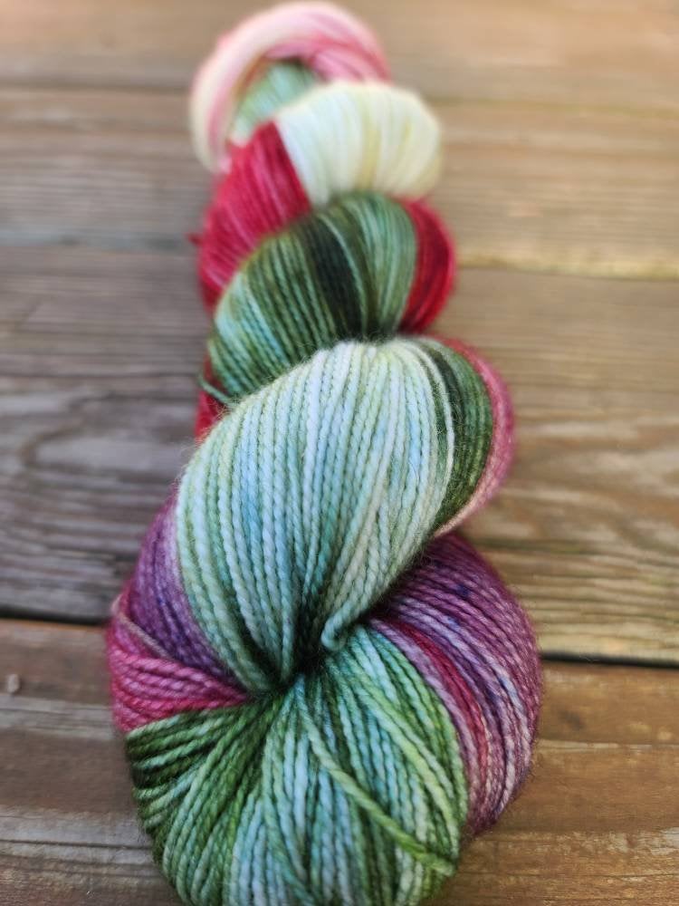 Skeins are dyed to order. There may be slight differences from skein to skein. If you are knitting with more than 1 skein, it is suggested to alternate between skeins to prevent any color pooling. Colors depicted in the pictures are as best represented as possible, however colors can vary slightly from monitor to monitor. All Woolen Women fiber is died with high quality acid dyes. Although adequate washing of the fiber is done prior to reaching your knitting needles- please take caution when first washing fiber or finished projects, as there is a chance bleeding may occur. Is is suggested to wash in a wool wash or a very mild detergent. Lay finished projects flat to dry. If you have any questions or concerns- I am happy to address them so you are nothing but excited about your purchase!